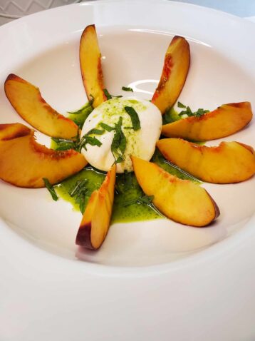 Summer in a bowl! This is one of my favorite things to serve during a sizzling summer day. Fresh cut peaches with burrata, chive oil, fresh mint, and sea salt. It is sweet, savory, and …
