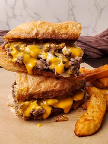Crunchy crusty bread with a garlic spread, perfectly seasoned beef, and melty cheese. This is what makes a good cheese steak sando! Now I am not claiming this is a PHILLY cheesesteak HOWEVER I know …