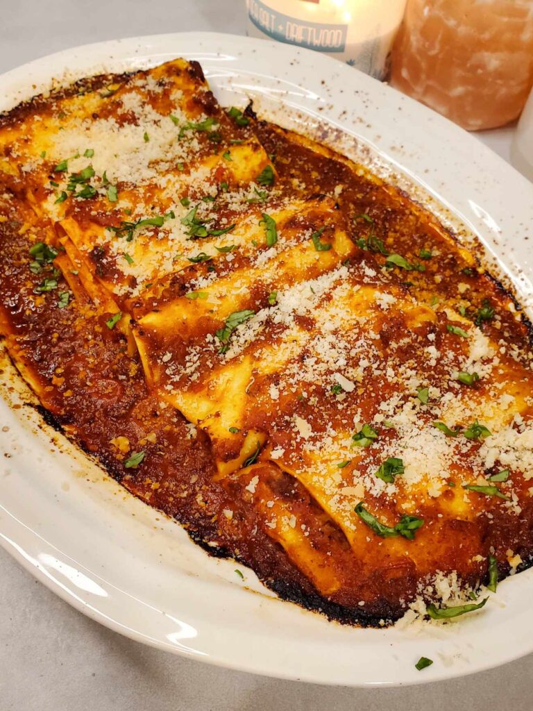 A delightful twist on a classic Italian dish! Using a quick bologonese style sauce still gives gourmet flavor with a ricotta mixture that we roll up it all up in fresh sheets of lasagna. This …